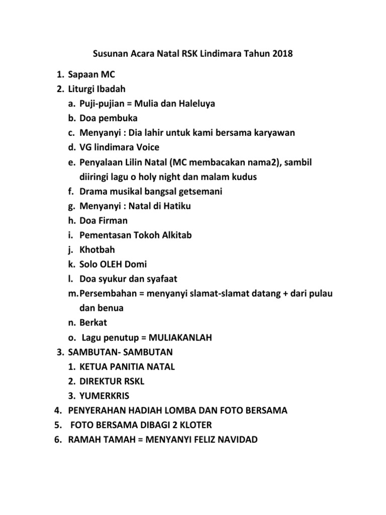 Uncategorized Susunan Acara Natal Tahun 2018 Upacara di sekolah paling sedikit dilaksanakan pada pagi hari setiap Tidak hanya terpaut pada susunan diatas untuk para bunda juga bisa mengembangkan lagi supaya acaranya lebih berkesan